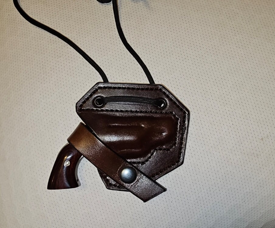 For sale is this very nice brown leather neck holster for the North American arms 22 long rifle .